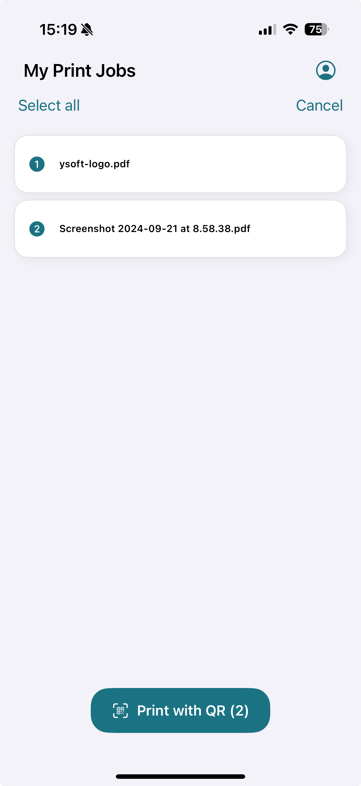 The SafeQ Mobile app now supports releasing documents via a QR code scanned on the printer. This feature is available only in environments with a gateway or when local storage is enabled on the client.