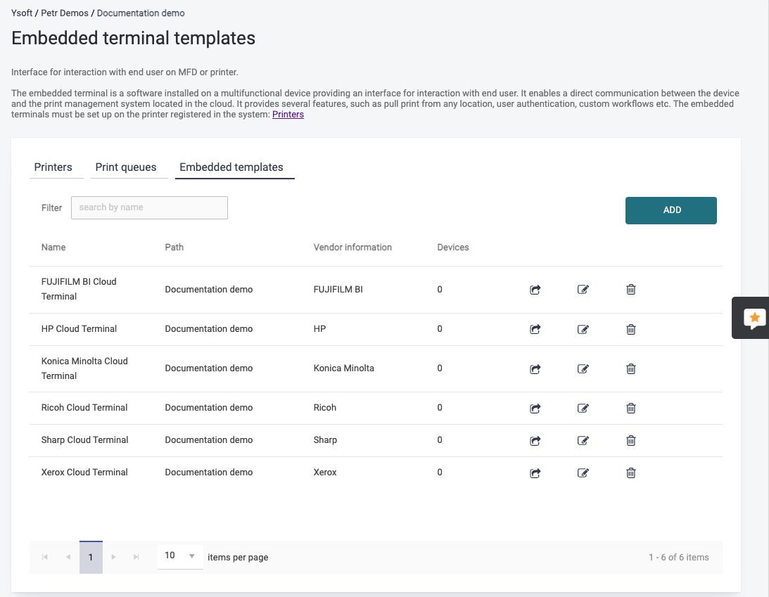 Every new customer has a list of default, preconfigured embedded terminals created.