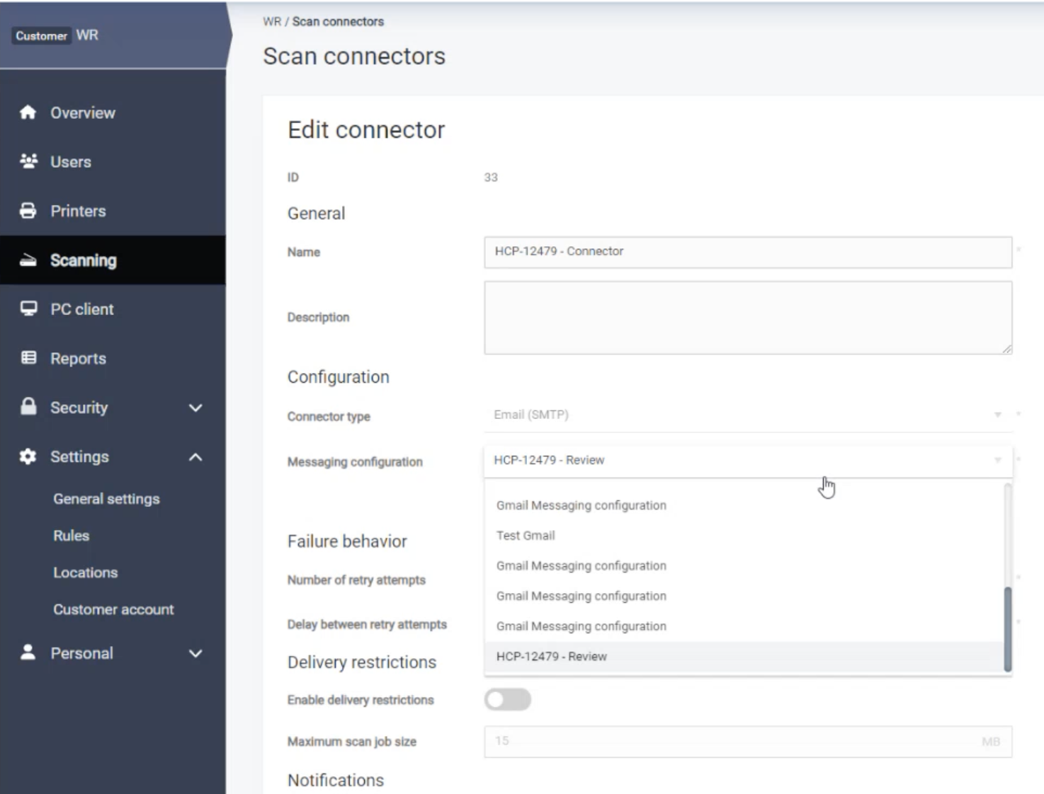 The messaging configuration now allows modern authentication with Google allowing its use in email messages and scan workflows.