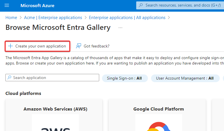 Navigate back to Microsoft Entra ID > Enterprise Applications > All applications.