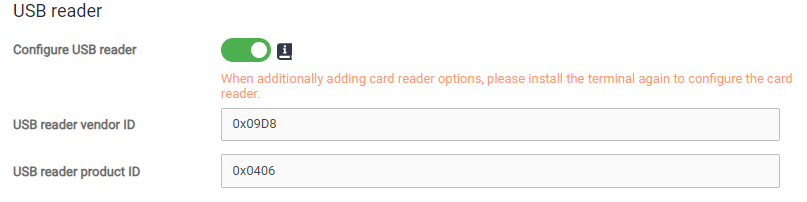 Optionally, enable Configure USB reader to set up the card reader and perform the following steps (set to disable to leave the card reader configuration untouched for future installations):