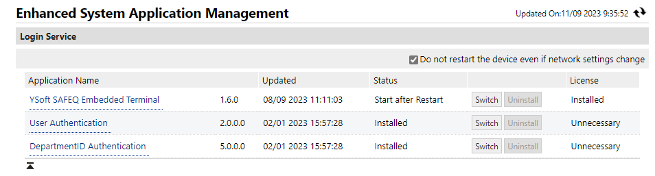 Push the “Uninstall” beside the “YSoft SAFEQ Embedded Terminal.” If the uninstall button is disabled, you may have to disable and delete the license file.