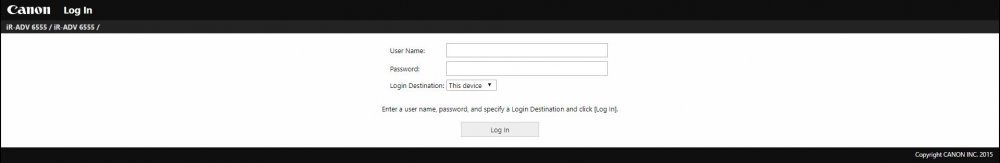 After reboot, log in by using the administrator’s username and password for the Canon Device. The default user name for the administrator is “Administrator” and the default password is “7654321”