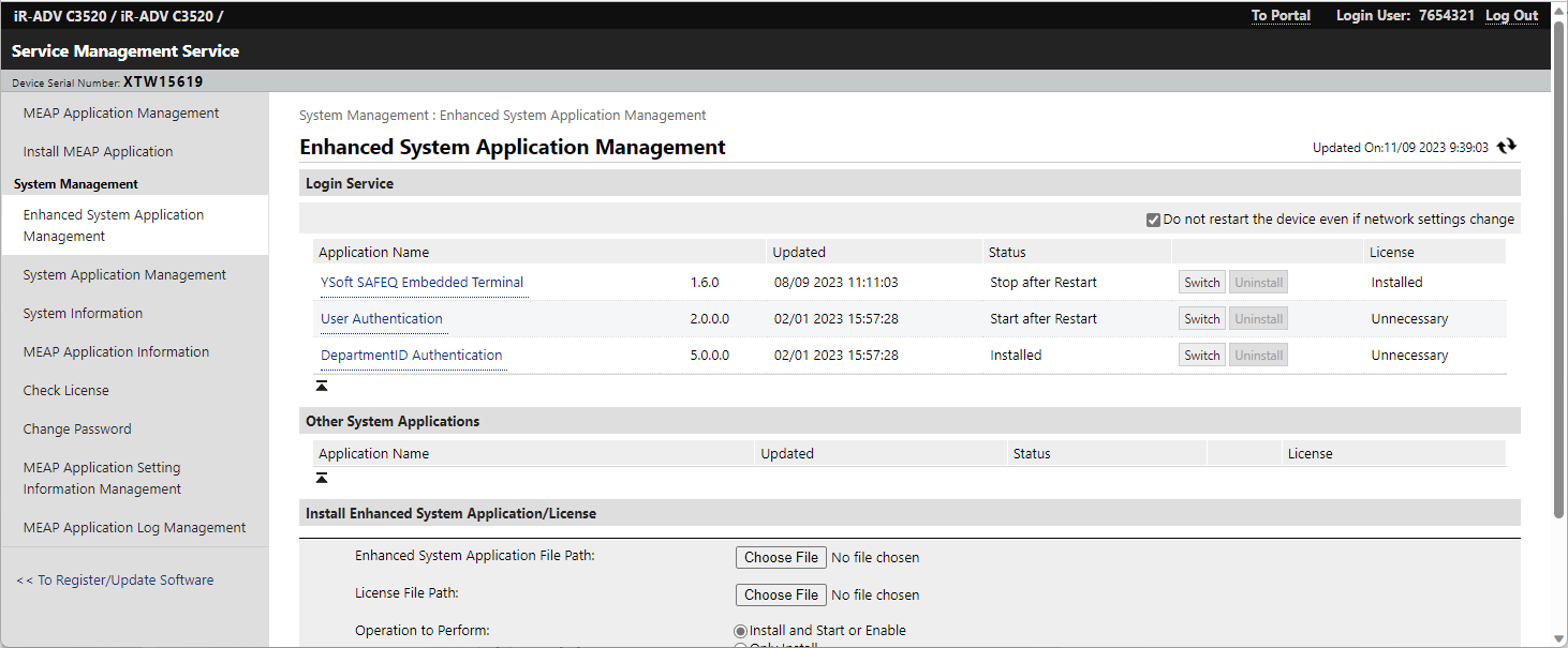 Click on ‘Enhanced System Application Management’, and then inside the ‘Install Enhanced System Application/License’ section: