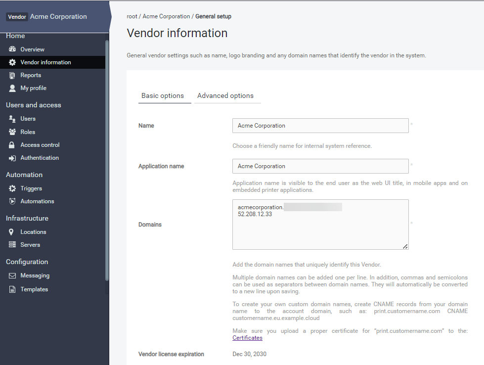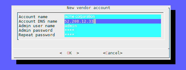 Next adding the Vendor information, we choose as the account domain, to use the IP address of the first primary server.