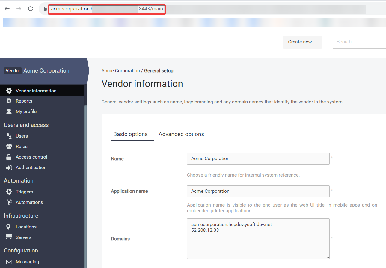 Log on to the root account, go to Vendor information and add the load balancer DNS as the first domain record, above the IP address of the first primary.