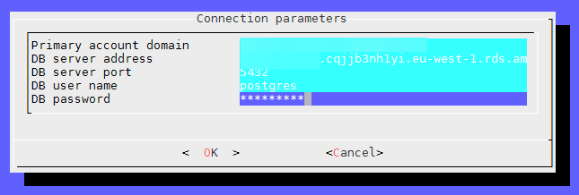 Next enter the account domain name of the root primary account. In this example, we use the load balancer DNS that was previously added as the accounts first domain.
