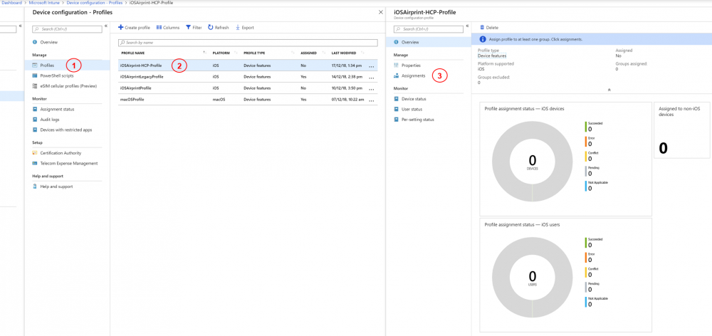 i. Setup and assign Airprint profiles for iOS and macOS devices in Microsoft Intune