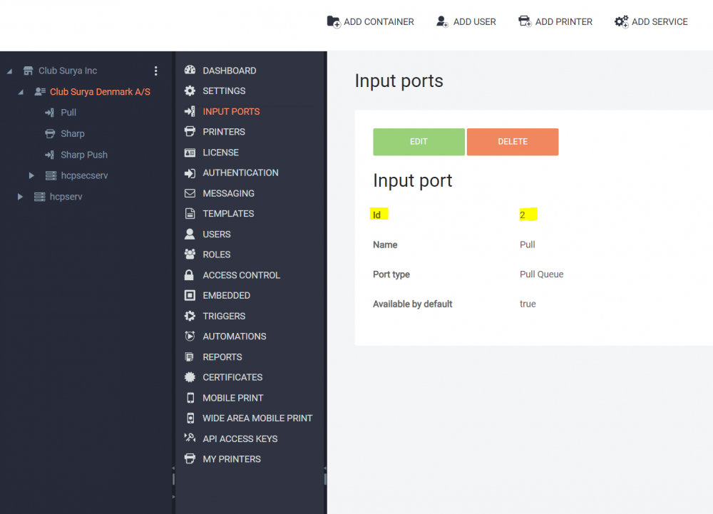 7 – Add resource path to relevant printer in the following format – ipp/# where # is port number as shown on Dispatcher Paragon Cloud web UI Input Ports section for the configured ports.