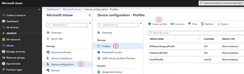 Setup and assign Airprint profiles for iOS and macOS devices in Microsoft Intune