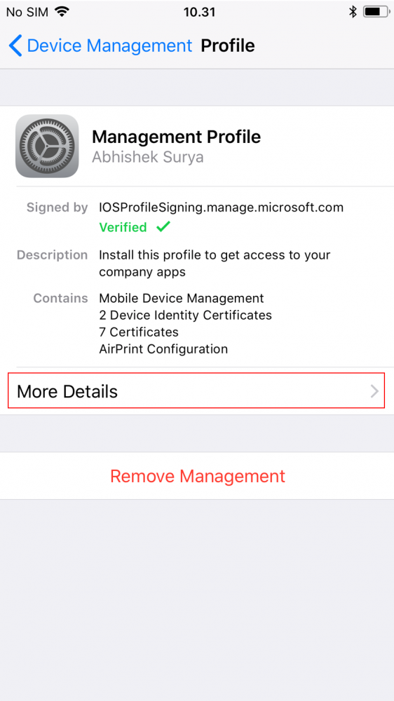 Scroll down and open Airprint profile and verify that the pushed configurations are as per profile setup done in Step 2.1