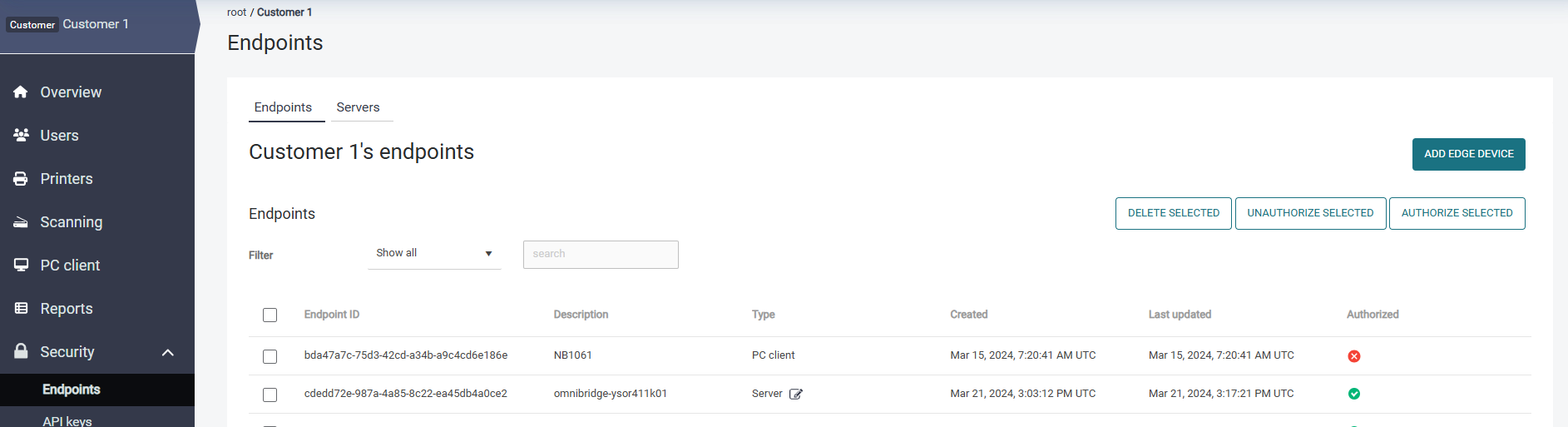 Dispatcher Paragon Cloud Client authorization is done from the Security section > Endpoints section:
