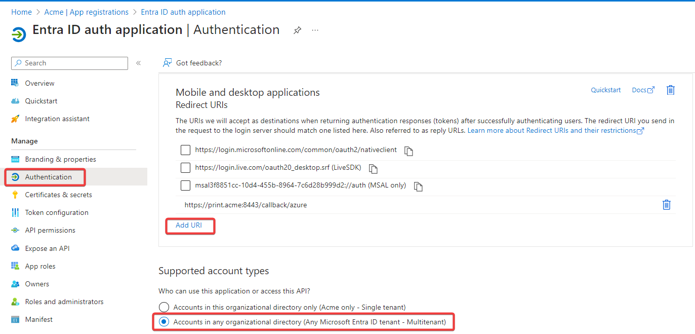In Supported account types, select Accounts in any organizational directory (Any Microsoft Entra ID tenant – Multitenant).