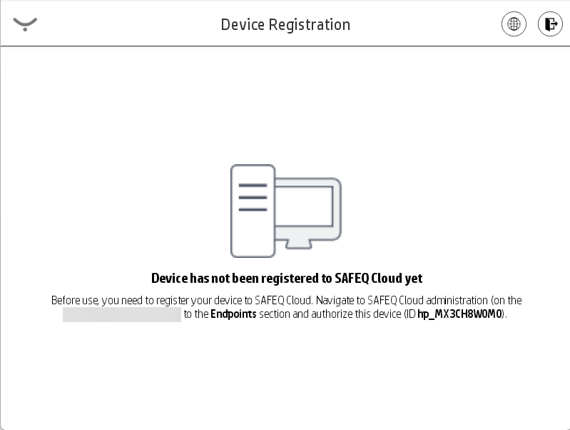 After the terminal installation from the HP Command Center, you will see the following screen on the MFD. Note down the endpoint ID. The endpoint ID is the MFD serial number prefixed with "hp_".