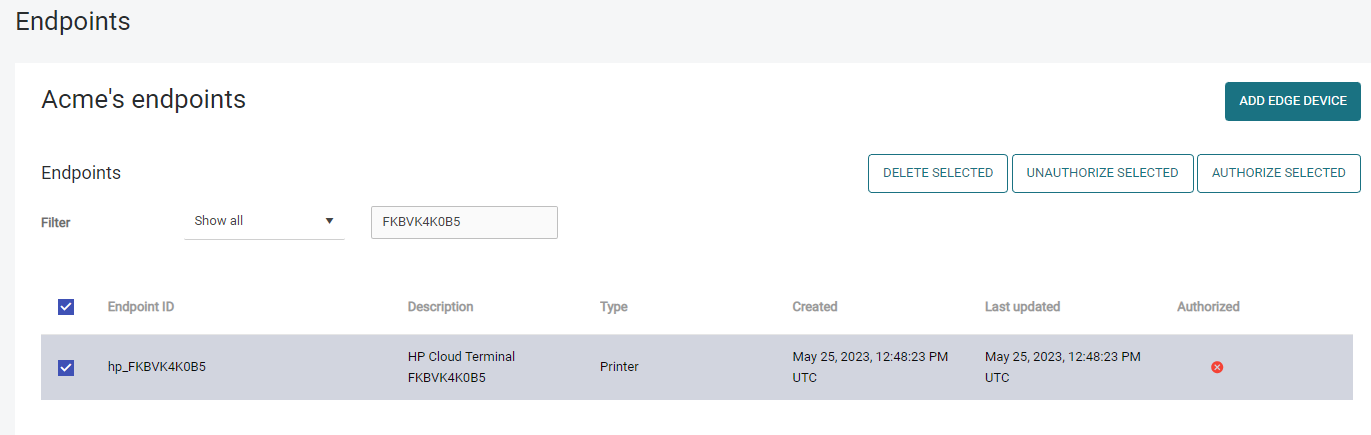 In Dispatcher Paragon Cloud web UI, go to Security > Endpoints and find the entry that contains the endpoint ID from the previous step.