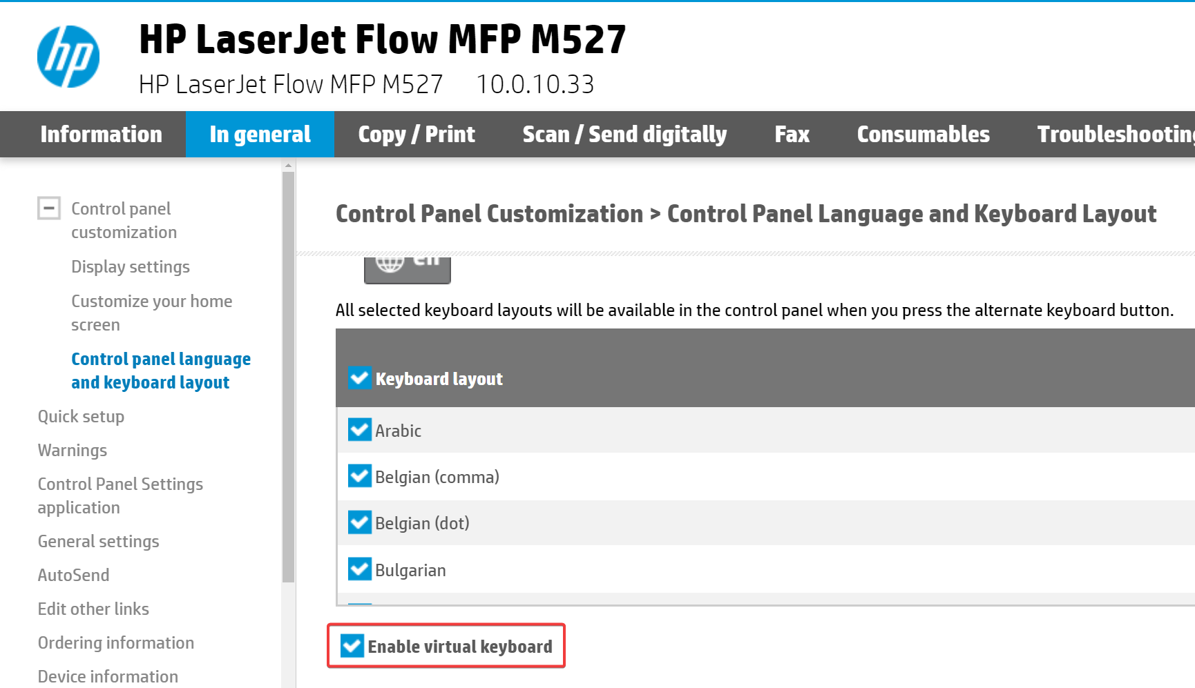 Select Enable Virtual Keyboard. If you don't see this checkbox, it means that the keyboard is enabled by default.