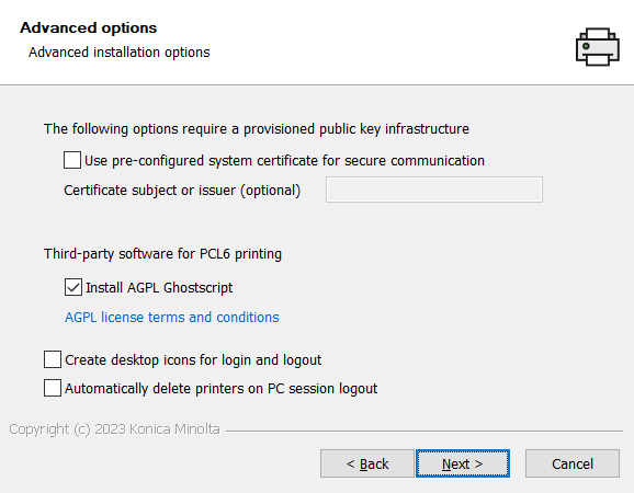 Install AGPL Ghostscript – install AGPL Ghostscript software which is necessary for PCL6 printing.
