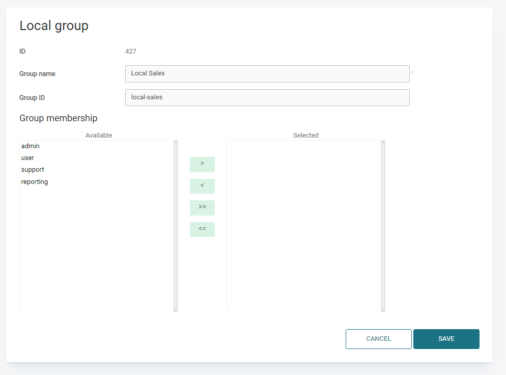 When editing a local group, you can define group membership. Group membership can also be changed in the user settings.
