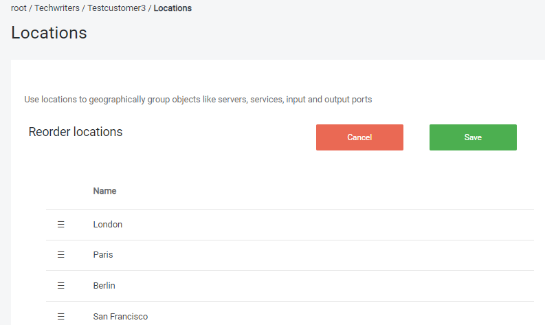 A new view where you can drag and drop the locations will be loaded. Reorder the locations as needed.