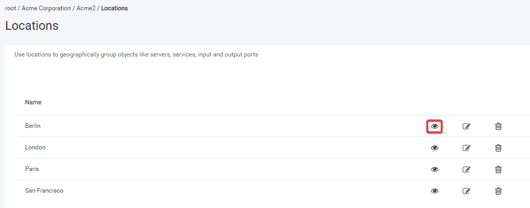 Click the eye icon next to the location for which you wish to see the associated objects.