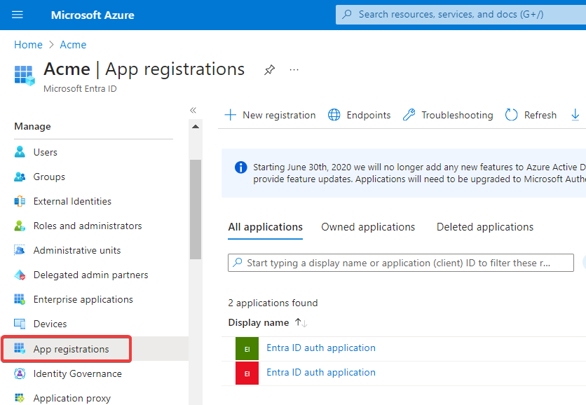To configure Microsoft Entra ID authentication using a service account, first, you need to create an App registration in Microsoft Azure. To do that, perform the following steps: