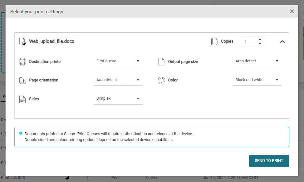 Your administrator has created at least one pull print queue in Dispatcher Paragon Cloud.