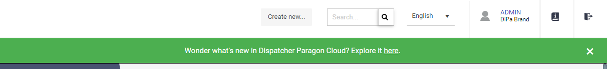 Whenever Dispatcher Paragon Cloud is updated to a new version, the notification with a link to the release notes appears at the top of the Dispatcher Paragon Cloud Web UI. It will be displayed until you close it manually. You will only see these notifications if you have the ViewNewReleaseNotification permission.