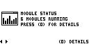 Module status screen – If there are any modules running on your OMNI Bridge, you can see their individual statuses here. Press 0 to display details.