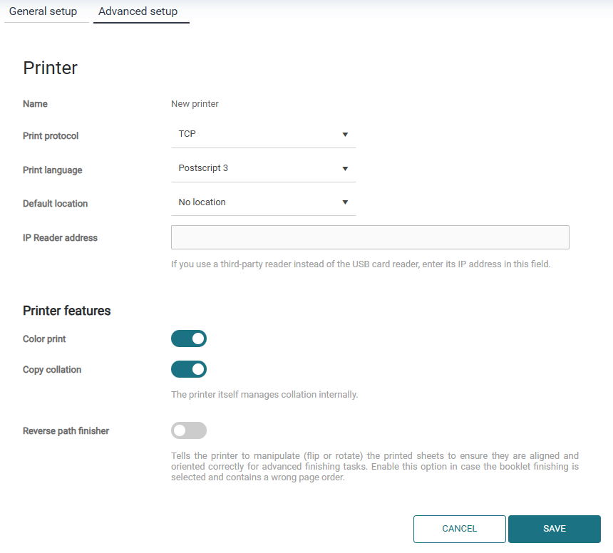 Advanced setup – Contains the settings described in the Adding a printer section.
