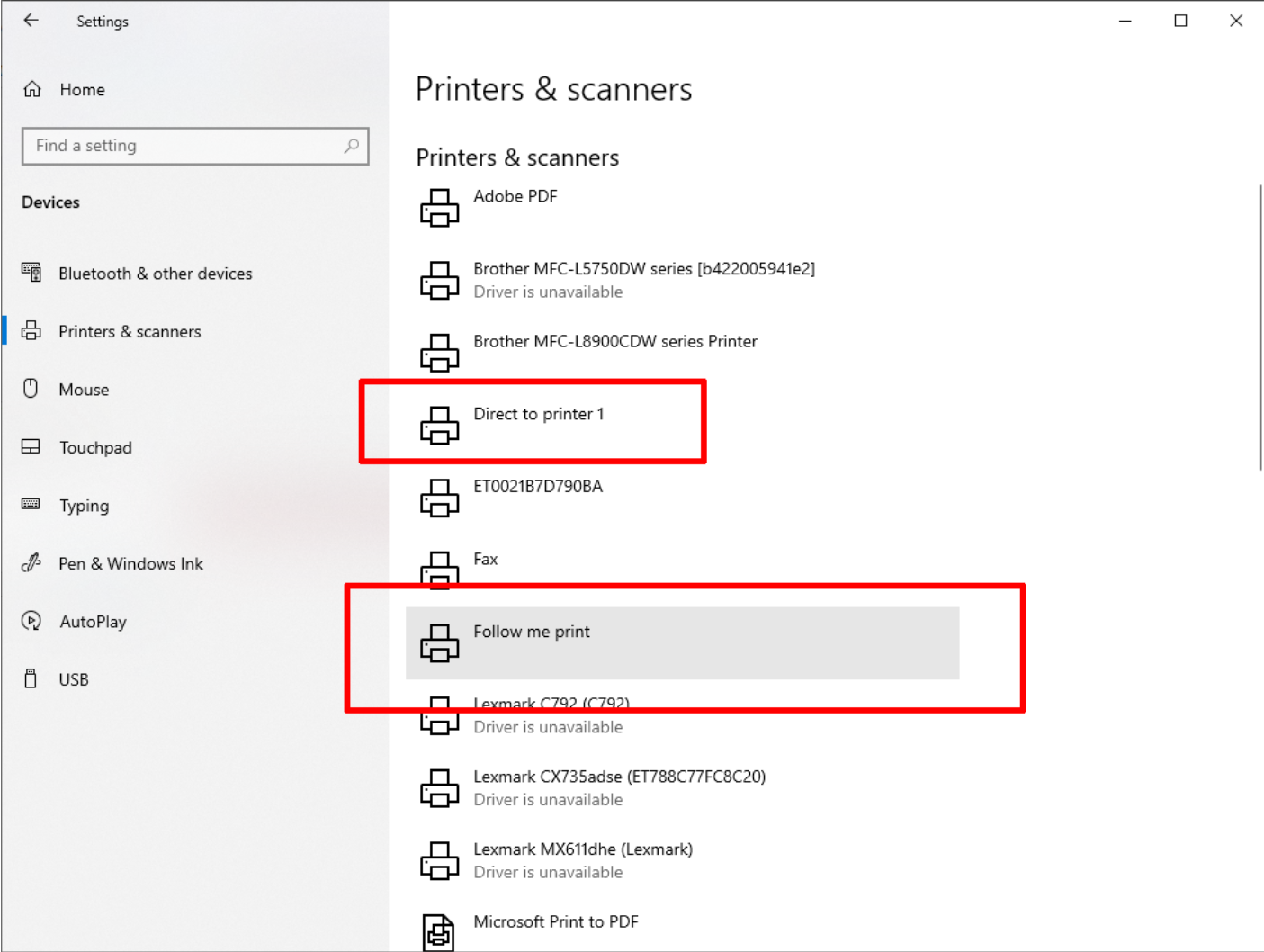 If you wish to use Direct print queues, the only step you need to do is to register your MFDs. See Printers.