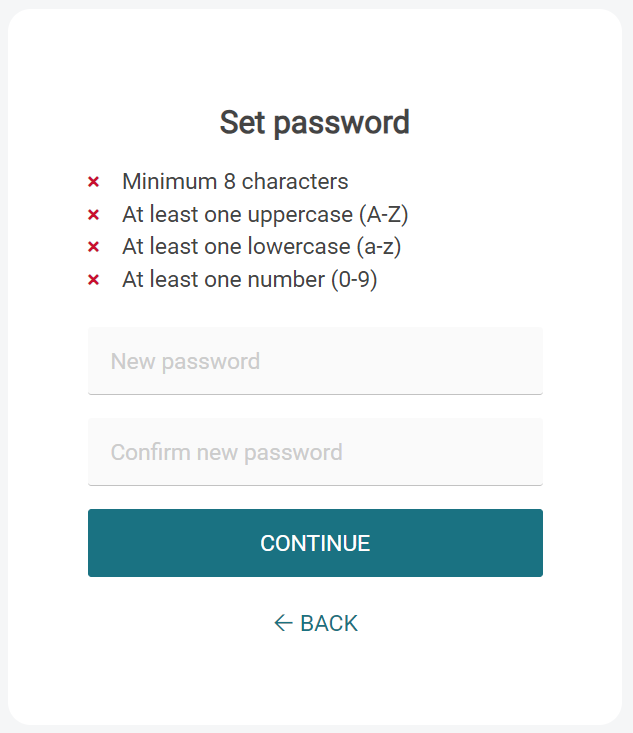 On the Set password screen, enter your new password for Dispatcher Paragon Cloud.
