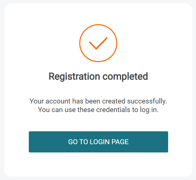 You will see a message that your registration is completed. If you wish to log in to Dispatcher Paragon Cloud, click Go to login page.