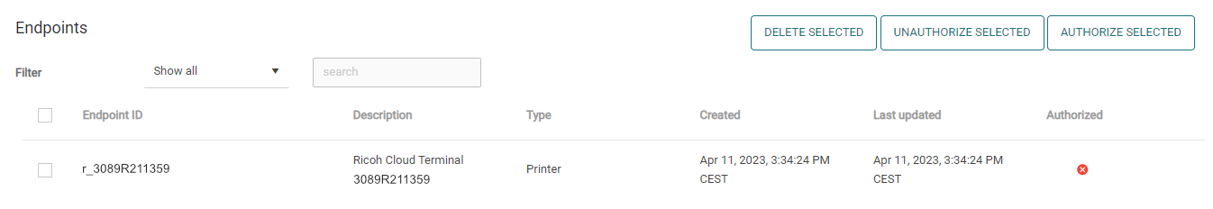 - In Dispatcher Paragon Cloud web UI, go to Endpoints and find the entry that contains the endpoint ID from the previous step.