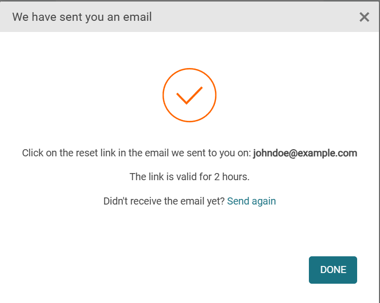 - You will receive an email with the reset password link. If the email doesn't arrive, click Send again.