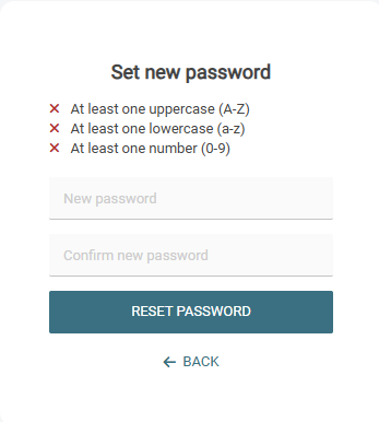 - On the Set new password screen, enter your new password for Dispatcher Paragon Cloud.