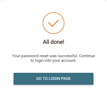 - You will see a message that your password reset is completed. If you wish to log in to Dispatcher Paragon Cloud, click Go to login page.
