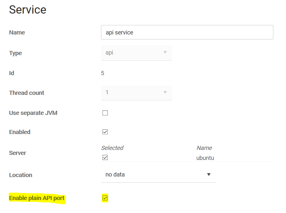 Edit Dispatcher Paragon Cloud API Service on primary/gateway as applicable to ‘Enable plain API port’ (optional – needed only if you want to use plain port)