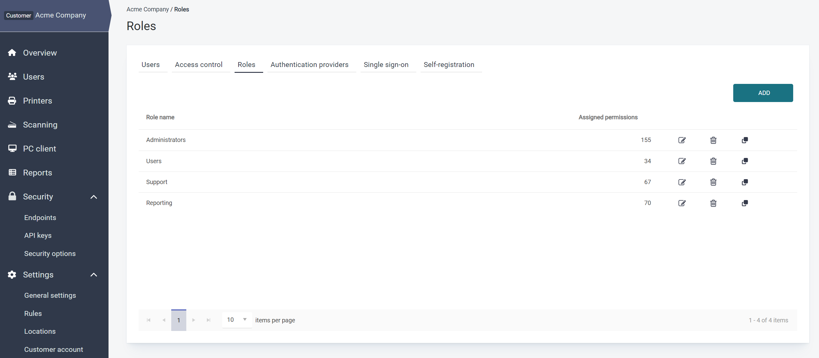 Dispatcher Paragon Cloud has four default security roles. You can modify these roles, or create new one based on the types of users that will access the system. Roles exist at each account level in the system.