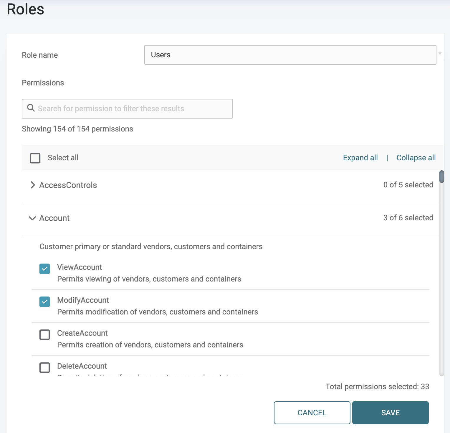 On the Edit Role screen, configure the new role by entering a name and selecting the permissions.
