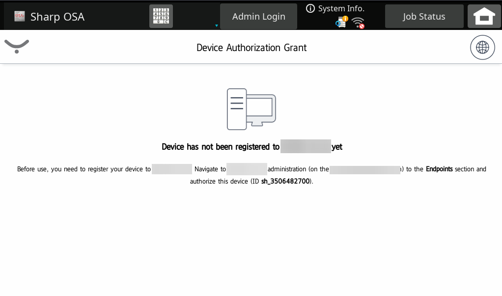 Solution: A possible cause of this is that Sharp OSA is configured for authentication; however, Offline authentication is enabled (possibly from the previous state of the MFD). You must disable it. See the Device setup section of this guide.