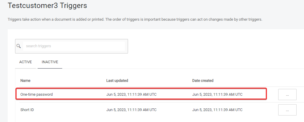 Via a trigger rule. By default, Dispatcher Paragon Cloud Web UI has a One-time password trigger listed under the inactive triggers which generates OTP on a first print job that the user sends to the system and then sends this OTP to the user’s email address. Activate the trigger in order to make it operational.