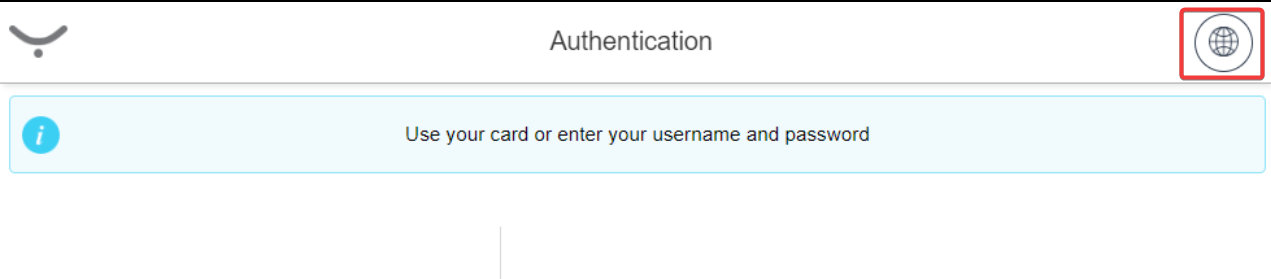 The authentication method depends on how your administrator configured the terminal. You can log in via card, PIN (Short ID), username/password, or their combinations. Follow the instructions on the screen.